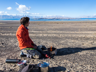 Notre première nuit est jouissive ... et très fraiche. Au bord du lac Karakul, à plus de 4 000 mètres, nous nous satisfaisons d’avoir choisi un équipement résistant au froid. Nous bénéficions même de ce dernier en récoltant de la neige sur les quelques névés afin de cuisiner. En revanche, la batterie de Bonnie n’aime toujours pas les températures avoisinant le zéro. Nouvelle petite session d'exercices (comme au pied du pic Lénine) afin de démarrer la moto que nous avions pris soin de garer en pente. Autant dire qu’effectuer un sprint à cette altitude, ça pique les poumons !